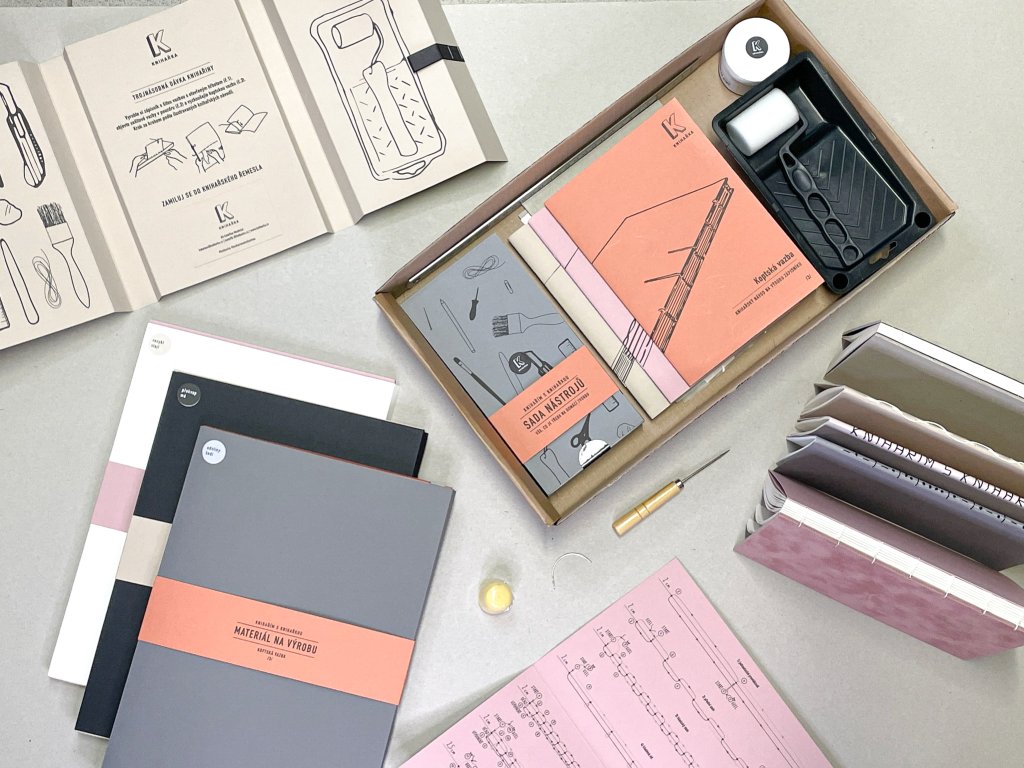 Návody + papíry + nástroje = plná nálož knihařiny